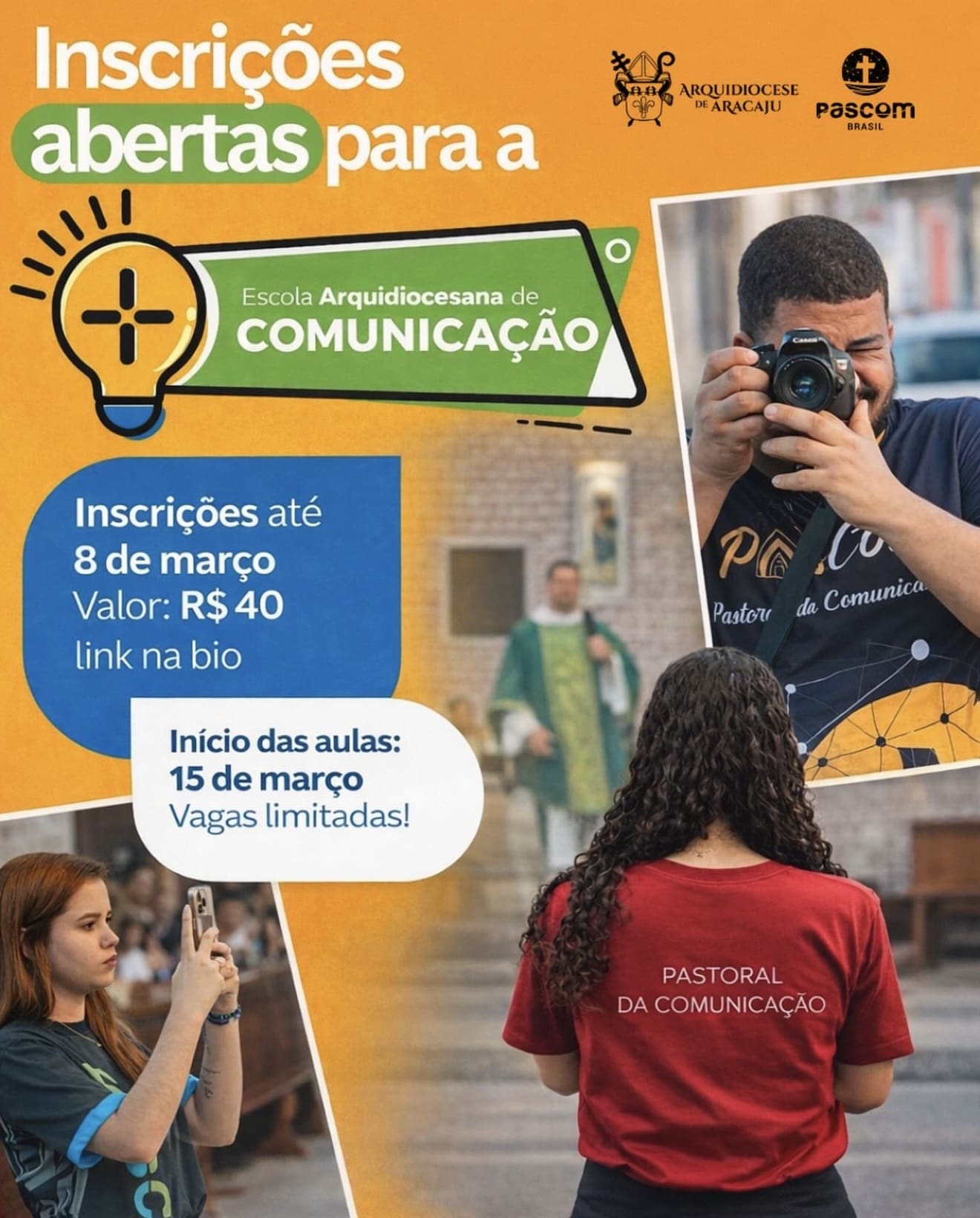 Estão abertas as inscrições para a Escola Arquidiocesana de Comunicação, iniciativa da Arquidiocese de Aracaju direcionada aos agentes da Pastoral da Comunicação (Pascom) das