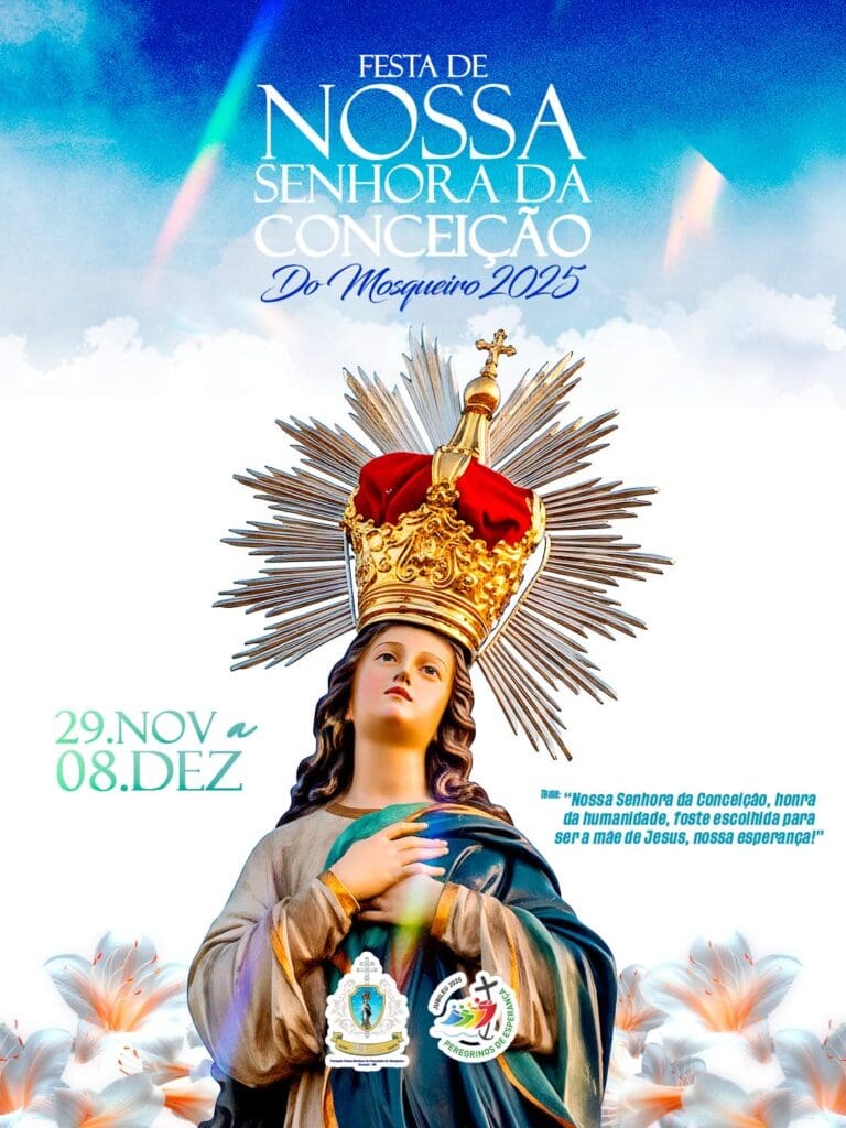 A tradicional Festa de Nossa Senhora da Conceição do Mosqueiro 2025 já está em andamento desde o dia 29 de novembro, reunindo grande número de fiéis e devotos que acorrem à paróquia para participar dos momentos de oração e celebrações dedicadas à padroeira. Neste ano, o evento tem como inspiração o tema: “Nossa Senhora da […]