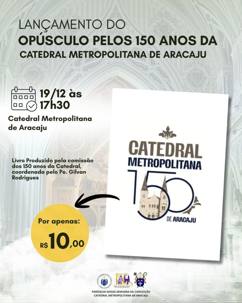 Hoje, 19 de dezembro de 2025, a Catedral Metropolitana de Aracaju realiza o tão aguardado lançamento do opúsculo comemorativo pelos seus 150 anos de história. O evento acontecerá às 17h30, no interior da própria Catedral, e tem como objetivo resgatar e preservar a memória do templo, celebrando sua importância para a cidade e a Arquidiocese […]