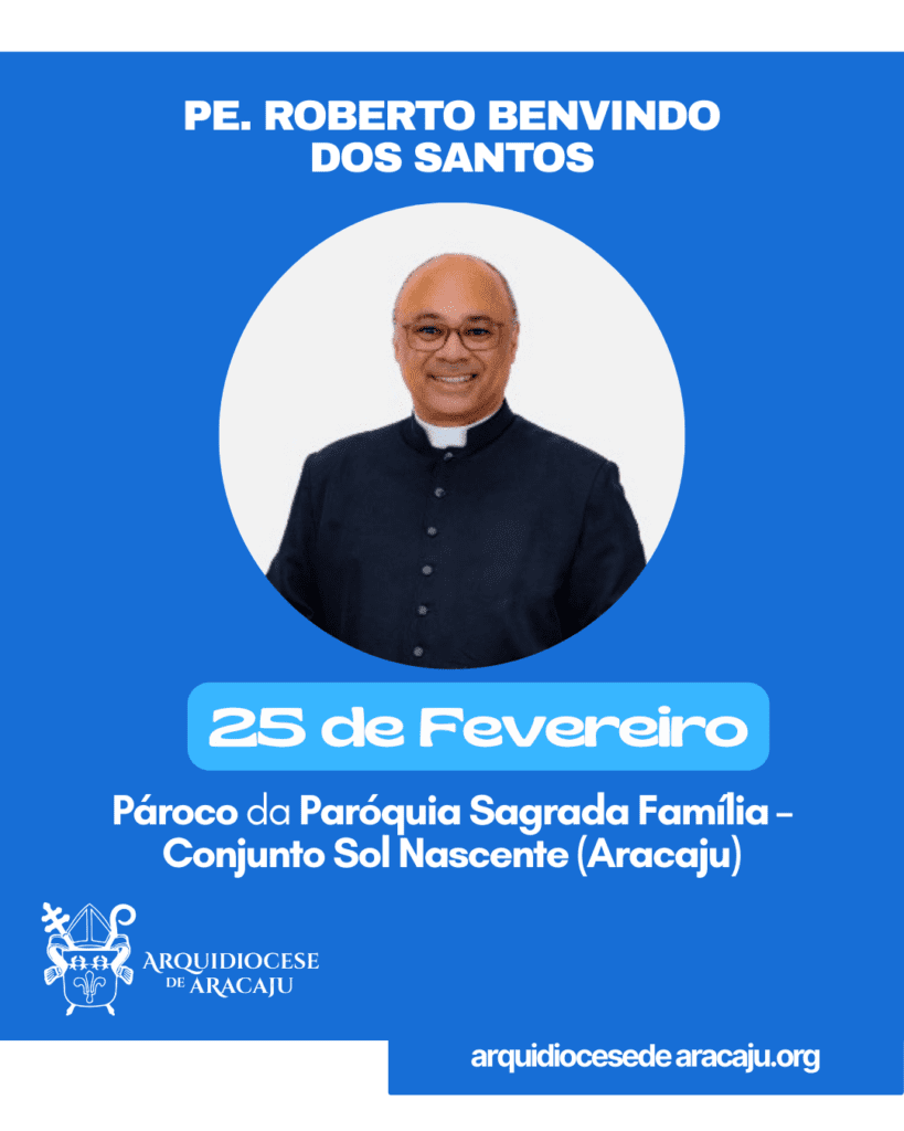 A Arquidiocese de Aracaju convida todo o Povo de Deus para a Santa Missa com rito de posse do Pe. Roberto Benvindo dos Santos como novo pároco da Paróquia Sagrada Família – Conjunto Sol Nascente, em Aracaju. A celebração acontecerá nesta quarta-feira, 25 de fevereiro, na igreja matriz da comunidade, e será presidida pelo arcebispo […]