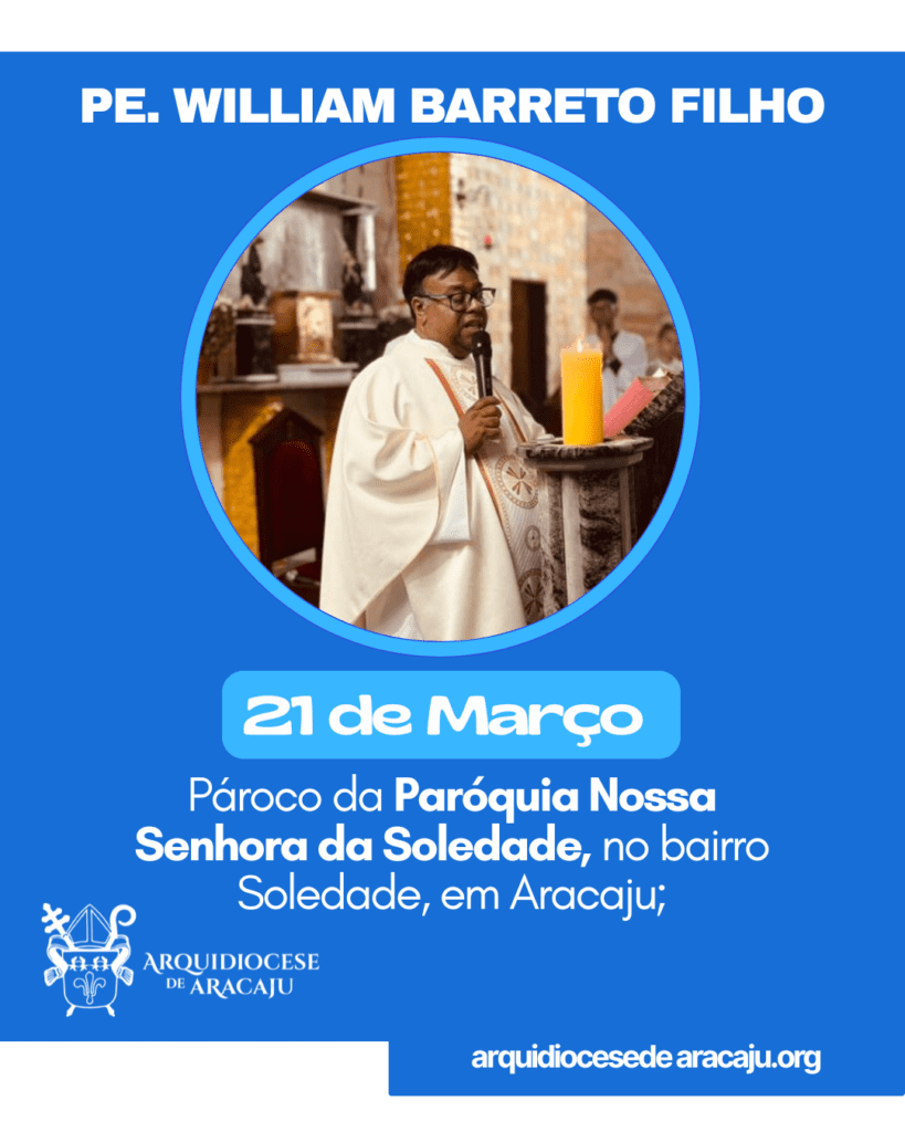 Arquidiocese de Aracaju convida para Posse Canônica do Pe. Williame Barreto na Paróquia Nossa Senhora da Soledade
