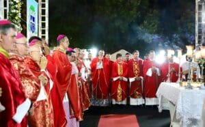 O arcebispo metropolitano, dom Josafá Menezes; o arcebispo emérito, dom José Palmeira Lessa, além vários presbíteros da Arquidiocese de Aracaju, concelebraram a Santa Missa de Posse Canônica de dom Valdemir Vicente, como 5º bispo da Diocese de Juazeiro-BA, na noite de sábado, 24 de agosto, na Catedral-Santuário Nossa Senhora das Grotas.