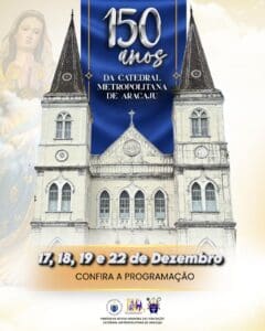 A Arquidiocese de Aracaju convida toda a comunidade a participar das celebrações e a render graças a Deus por um século e meio de fé, missão e história vividos na Catedral Metropolitana.