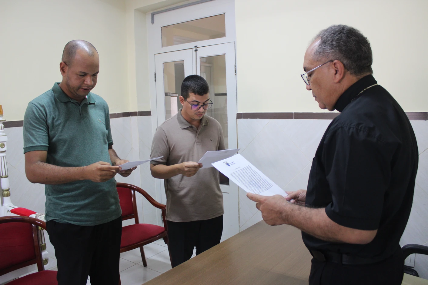 Em cumprimento a uma exigência canônica para a ordenação diaconal, os seminaristas José Valdo Barbosa Júnior e Ivan de Jesus Oliveira Santos fizeram, nesta
