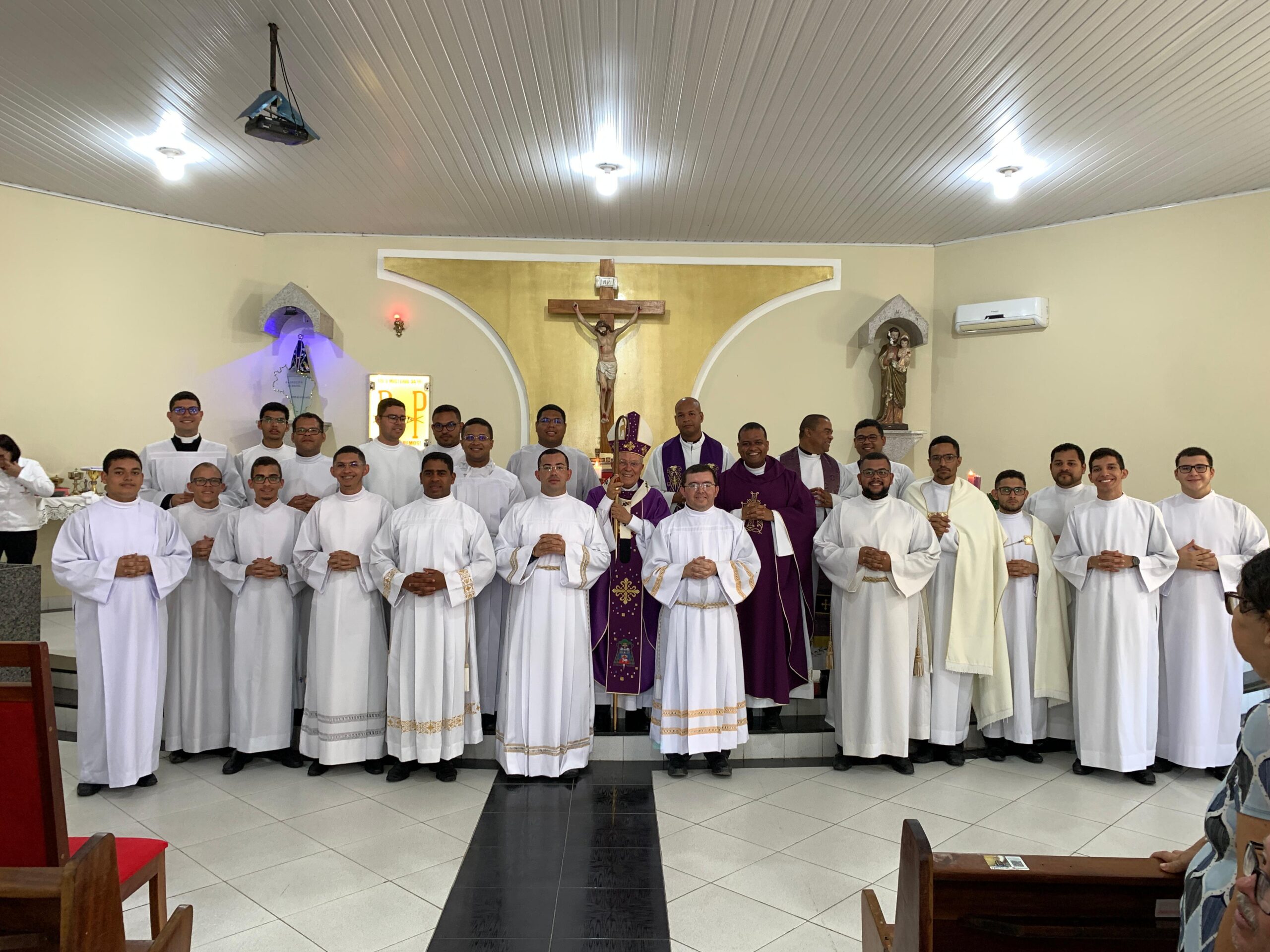 Durante a Santa Missa de encerramento, dom Josafá conferiu o Ministério de Leitor para os seminaristas José Fernando e Micael.
