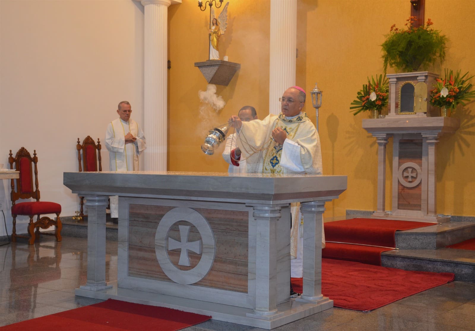 Presidida pelo administrador apostólico, dom Vítor Agnaldo, e com a participação de expressivo número de fiéis, a sagrada liturgia foi a ocasião escolhida para o rito de bênção do novo Altar e do novo Ambão da matriz paroquial.
