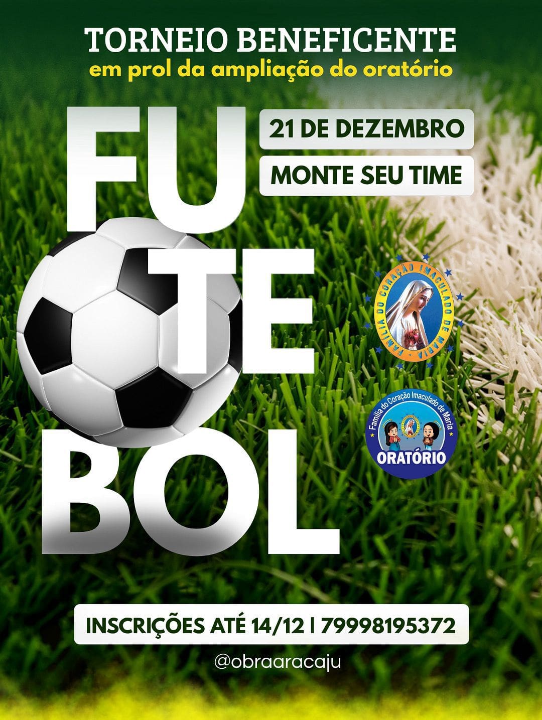 A Obra Nossa Senhora de Fátima realizará, no dia 21 de dezembro de 2025, o 1º Torneio de Futebol Beneficente, uma iniciativa destinada a apoiar a ampliação do Oratório FCIM. O evento reunirá paróquias, associações e movimentos católicos de toda a Arquidiocese de Aracaju em um dia de integração, esporte e solidariedade.