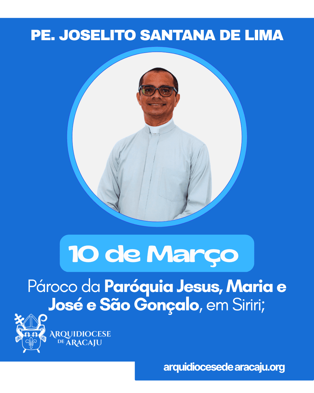 A Santa Missa do dia jubilar irá ocorrer às 19h, sob a presidência do administrador apostólico da Arquidiocese de Aracaju, dom Vítor Agnaldo de Menezes.