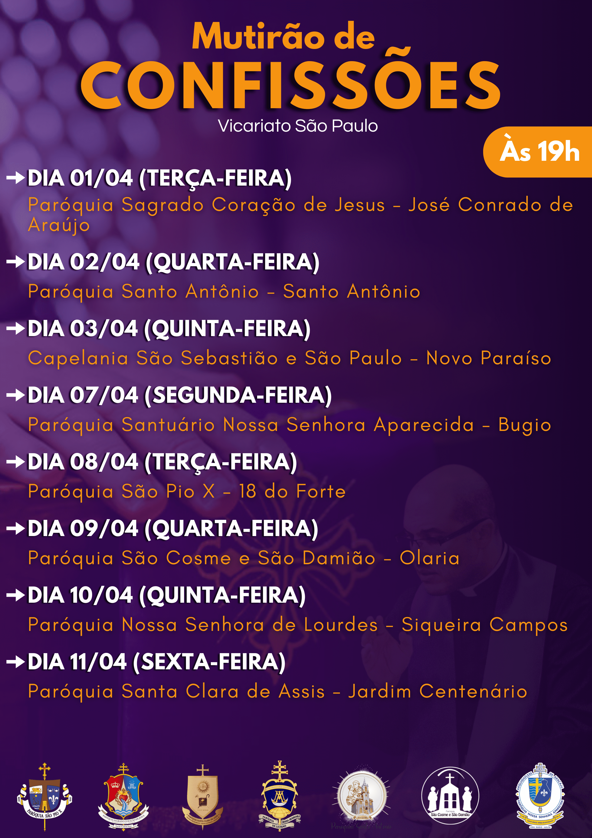 Observação: todas as Confissões mencionadas serão realizadas na igreja matriz das paróquias