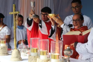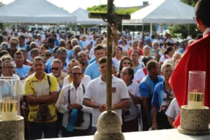 Na cidade que recebe o nome da padroeira de Sergipe, os peregrinos participaram de um momento de adoração ao Santíssimo Sacramento e de Missa campal.