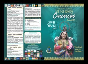 A Missa solene, no dia 8 de dezembro, ocorrerá às 16h, seguida de Procissão e Bênção com o Santíssimo Sacramento.