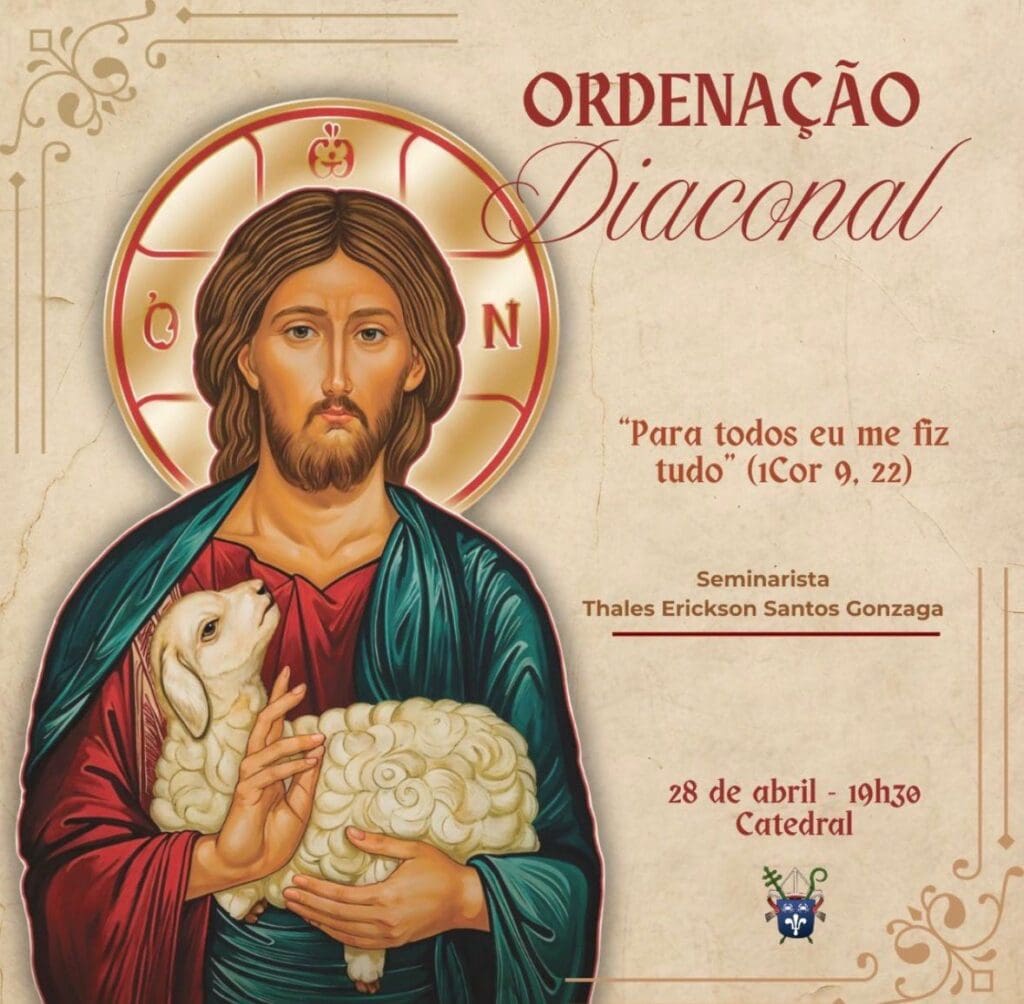 A Arquidiocese de Aracaju convida todos os fiéis, comunidades, pastorais, movimentos e o povo de Deus para participarem deste momento de graça e alegria, unindo-se em oração e presença fraterna na celebração da Ordenação Diaconal.