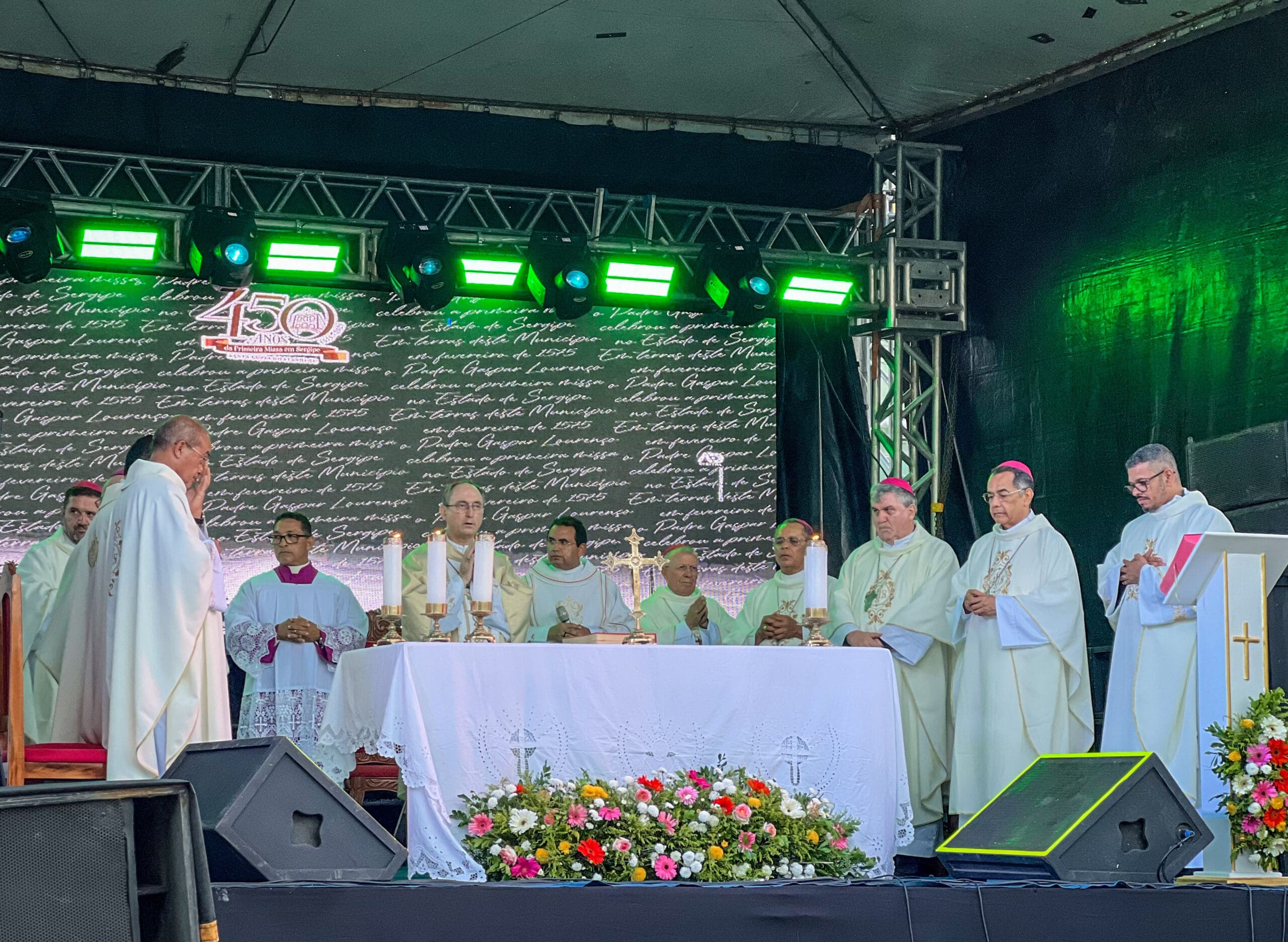As celebrações começaram logo ao amanhecer, com uma alvorada festiva e o tradicional ofício religioso em honra a Nossa Senhora. Em seguida, houve o hasteamento das bandeiras, simbolizando a união entre a fé e a identidade cultural do município. Um dos momentos mais marcantes foi a inauguração de um monumento em homenagem aos 450 anos da missa, destacando a importância histórica do evento. Durante a cerimônia, também ocorreu o descerramento da placa comemorativa, com a presença de autoridades civis e religiosas. A programação contou ainda com cortejos litúrgicos e momentos de oração, reunindo fiéis de diversas regiões. No espaço cultural, uma feira gastronômica e apresentações artísticas enalteceram a riqueza das tradições sergipanas.