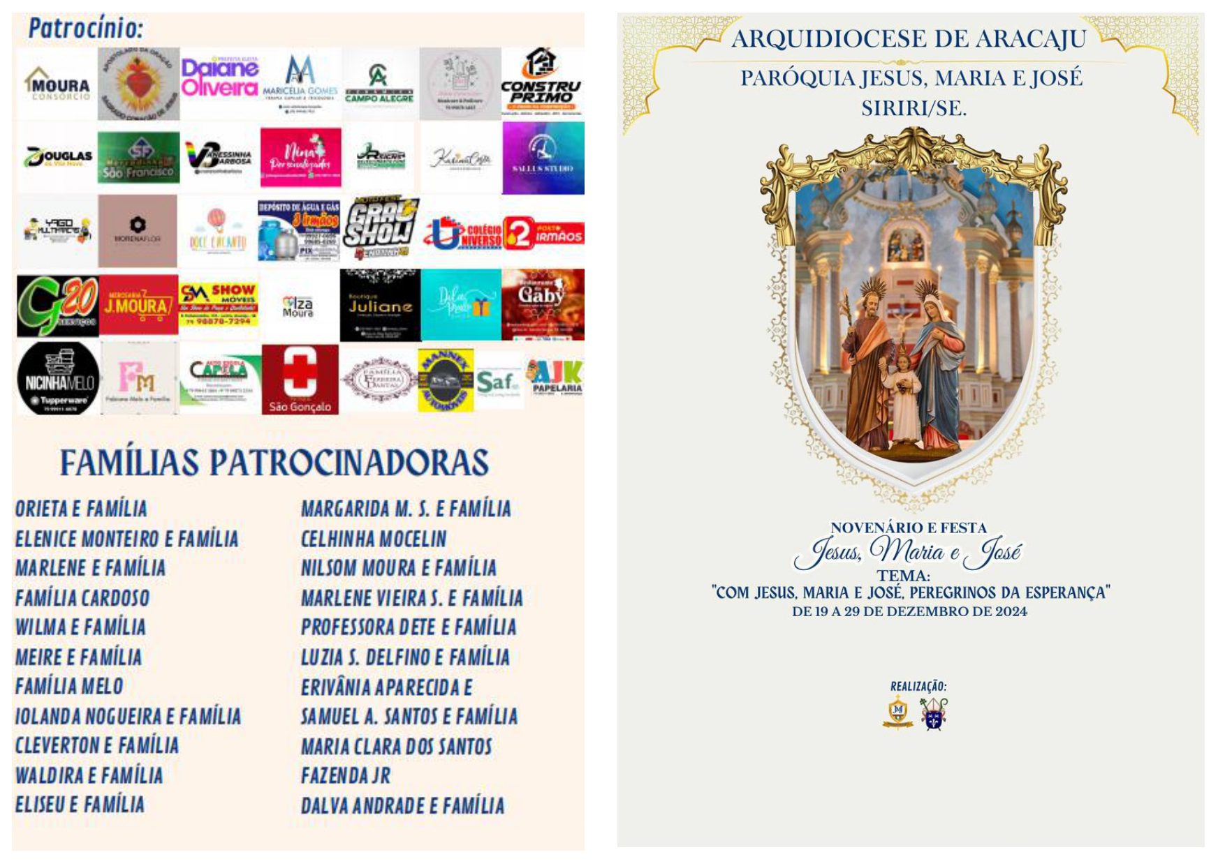 O padre Luiz Gustavo de Luz, pároco da paróquia Jesus, Maria e José, em Siriri-SE (Vicariato São João), convida fiéis e devotos para os festejos alusivos aos excelsos padroeiros dessa comunidade paroquial, de 19 a 29 de dezembro.